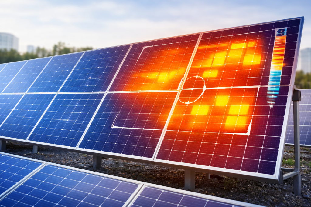 Sistema automatizado que analiza imágenes térmicas y visuales mediante inteligencia artificial para identificar fallas y mejorar el rendimiento de granjas solares.